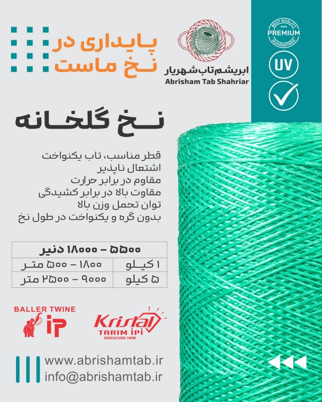 در گلخانهها به منظور بالا نگه داشتن بوتهها و همچنین جلوگیری از افتادگی محصولات از نخ گلخانه استفاده میشود. از نخ گلخانه در کشت محصولاتی از مثل گوجه، فلفل، خیار و سایر صیفیجات استفاده میشود. با استفاده از این نخها میتوانید تعداد بیشتری بوته را در گلخانه خود پرورش دهید و از فضای موجود بهینه استفاده کنید.این نخها در ترکیبات خود مواد Anti Uv دارند و در مقابل اشعه ماوراء بنفش و نور شدید آفتاب دچار هیچگونه آسیبی نمیشوند.